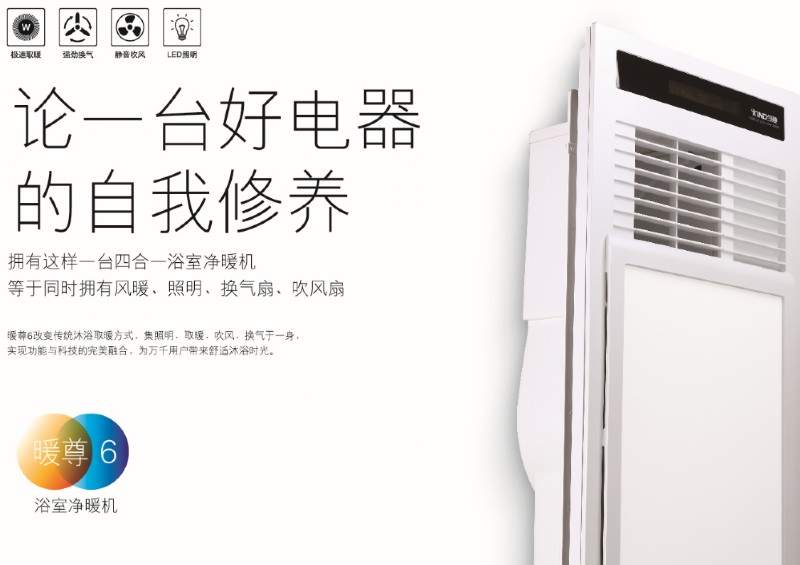 和传统多功能浴霸、浴室暖空调不一样,暖尊6独特的双电机设计,可支持取暖换气同步运行,使沐浴环境暖而不闷。而眼下正值炎炎夏日,可换而设置吹风换气,让自然凉风和换气同步运行,令浴室凉爽舒适,从此再无闷热烦恼!